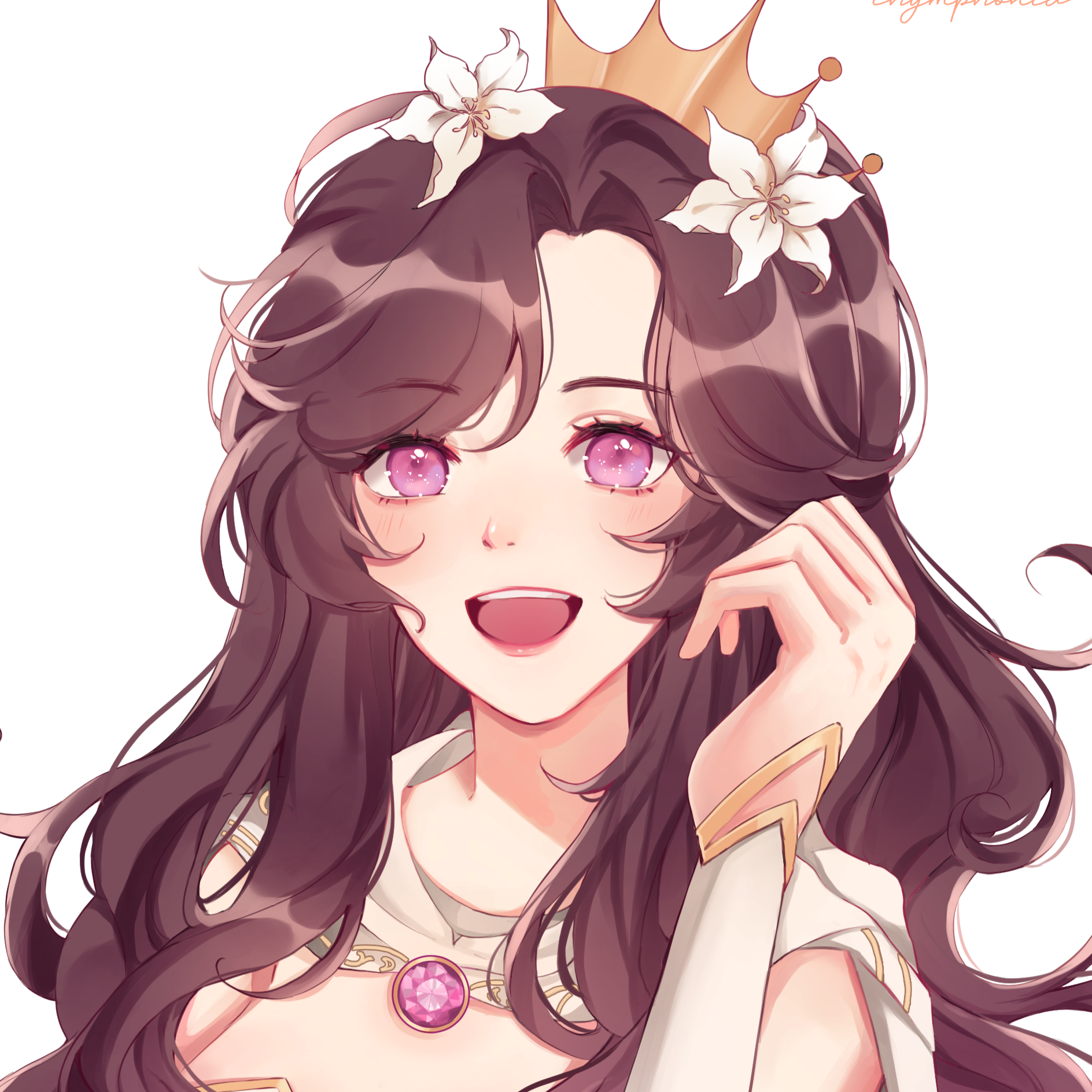 Vera is a tall, slender young woman standing at 5 foot 7 inches. With her shoes, she stands at 5 feet, 10 inches tall. She has rosy skin and always has a bright smile.Vera has purple eyes and black hair that catches light. She keeps her hair pulled up in a half-up, half-down ponytail. In her hair, she wears one (or more) of Ren's lilies.She wears a white and gold leotard, thigh-high tights, heels, and a cape. Her cape is imbued with magical properties that keeps her warm. She hates the cold.
