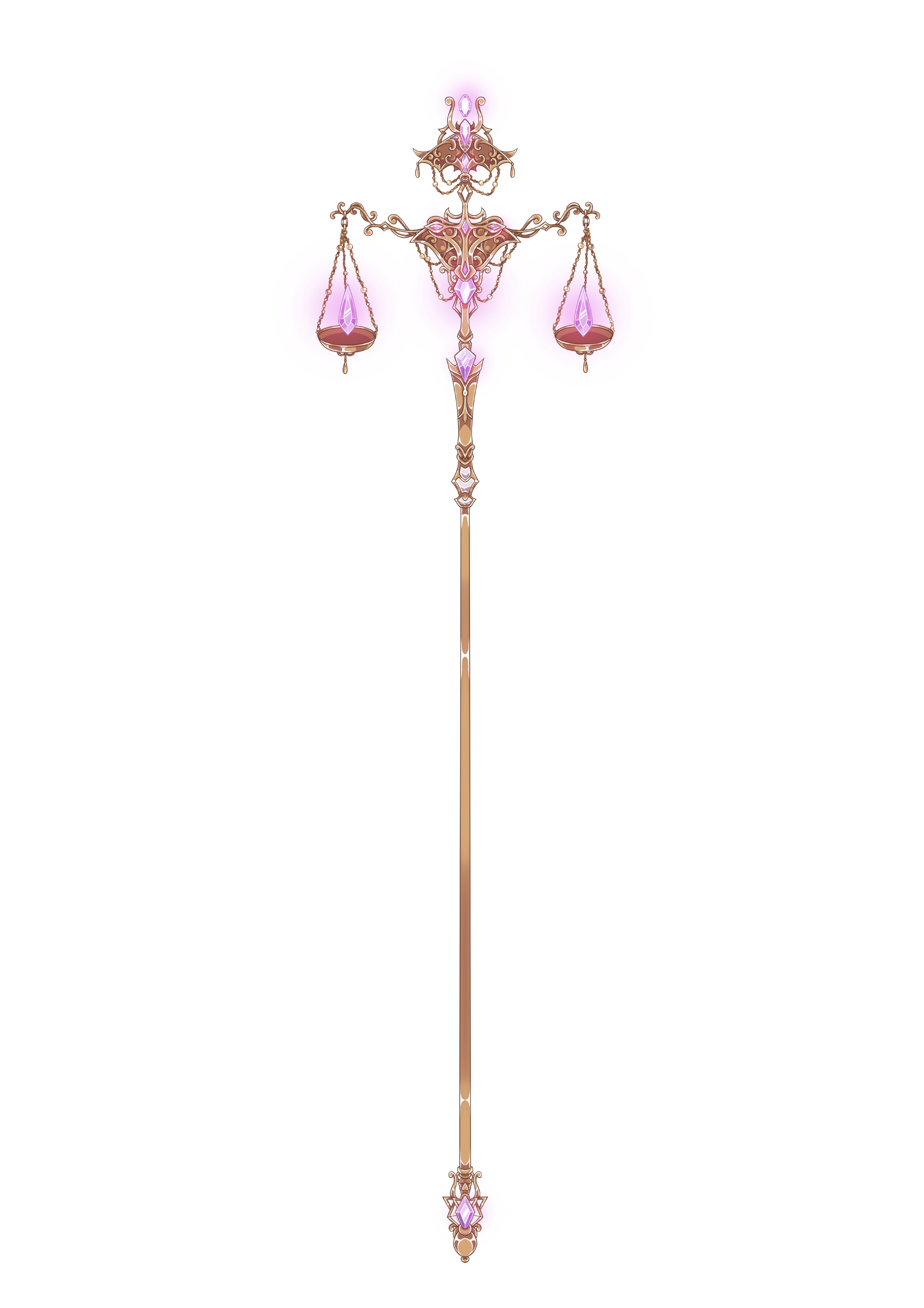 Judgment Staff: the scales on the staff will ebb and flow depending on the form of magic she is beckoning.